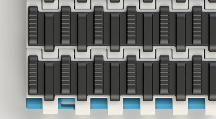 - Diseño especial para transportadores inclinados en ascenso o descenso para el transporte de productos empacados, cajas, canastas, pallets